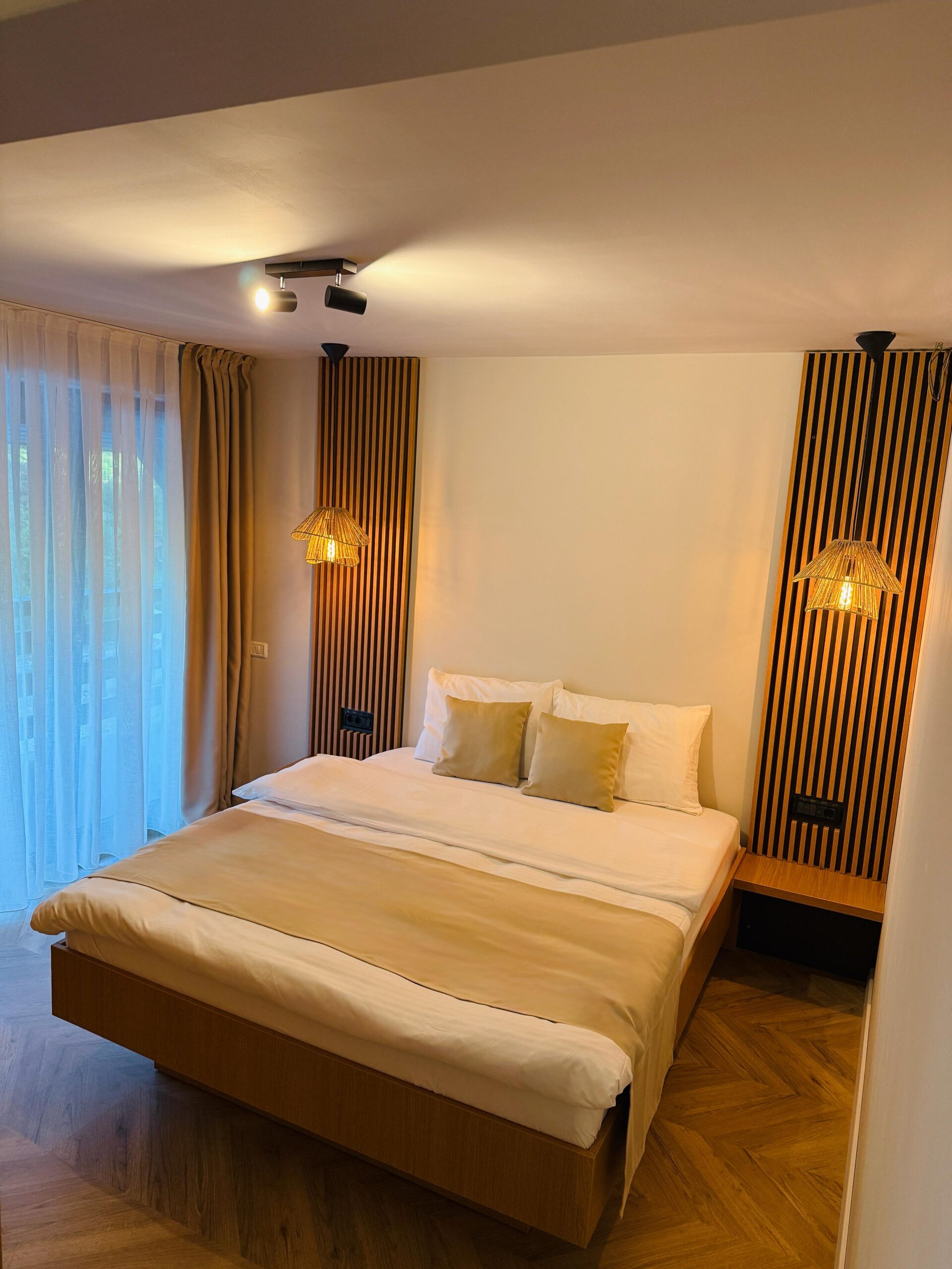 Cea mai spațioasă și elegantă cameră a pensiunii, Junior Suite, îți oferă o experiență de neuitat. Cu o suprafață generoasă de 26 mp și un design care îmbină confortul modern cu eleganța clasică, această suită este perfectă pentru cupluri sau familii care doresc să se bucure de un sejur special.