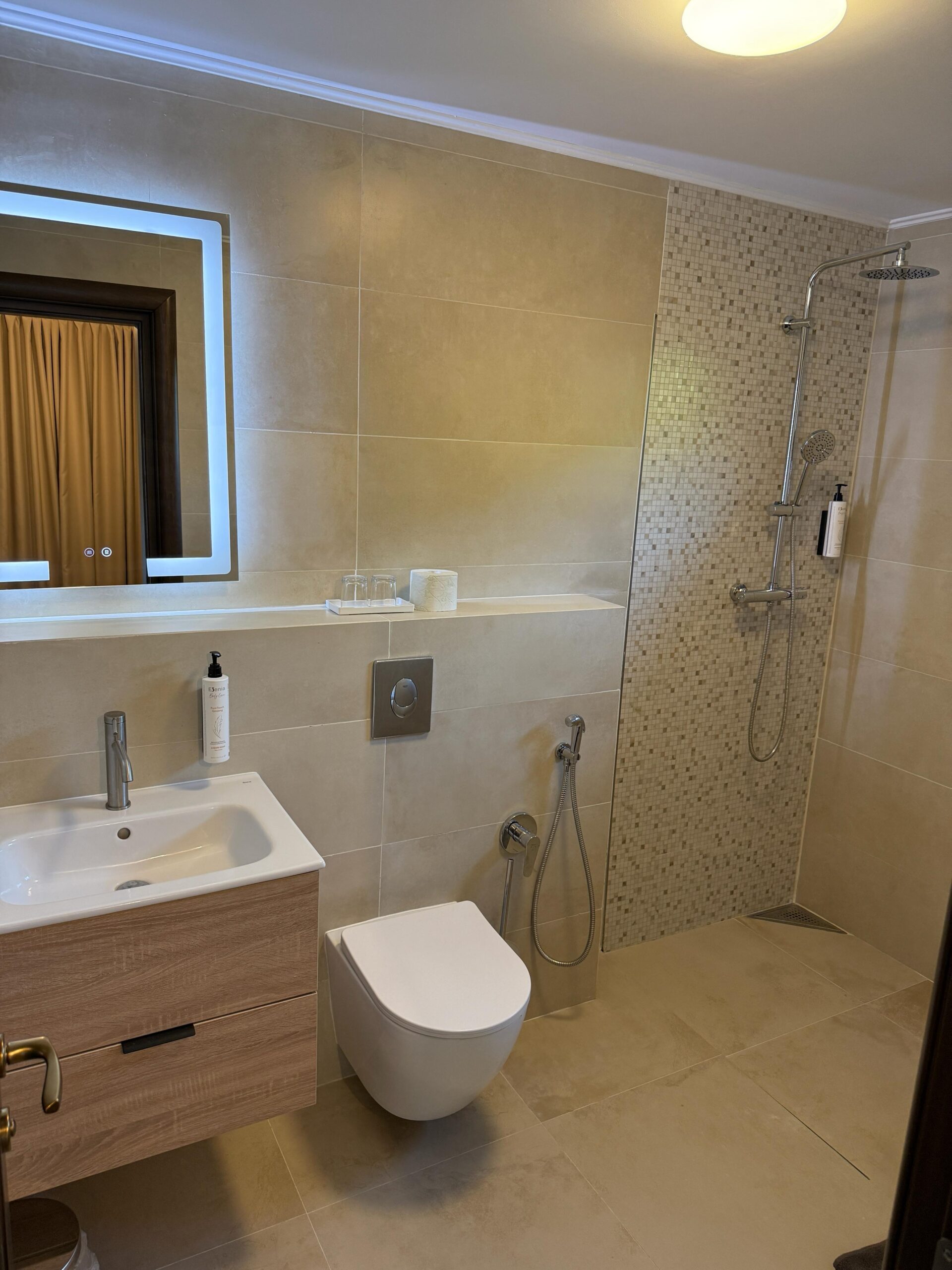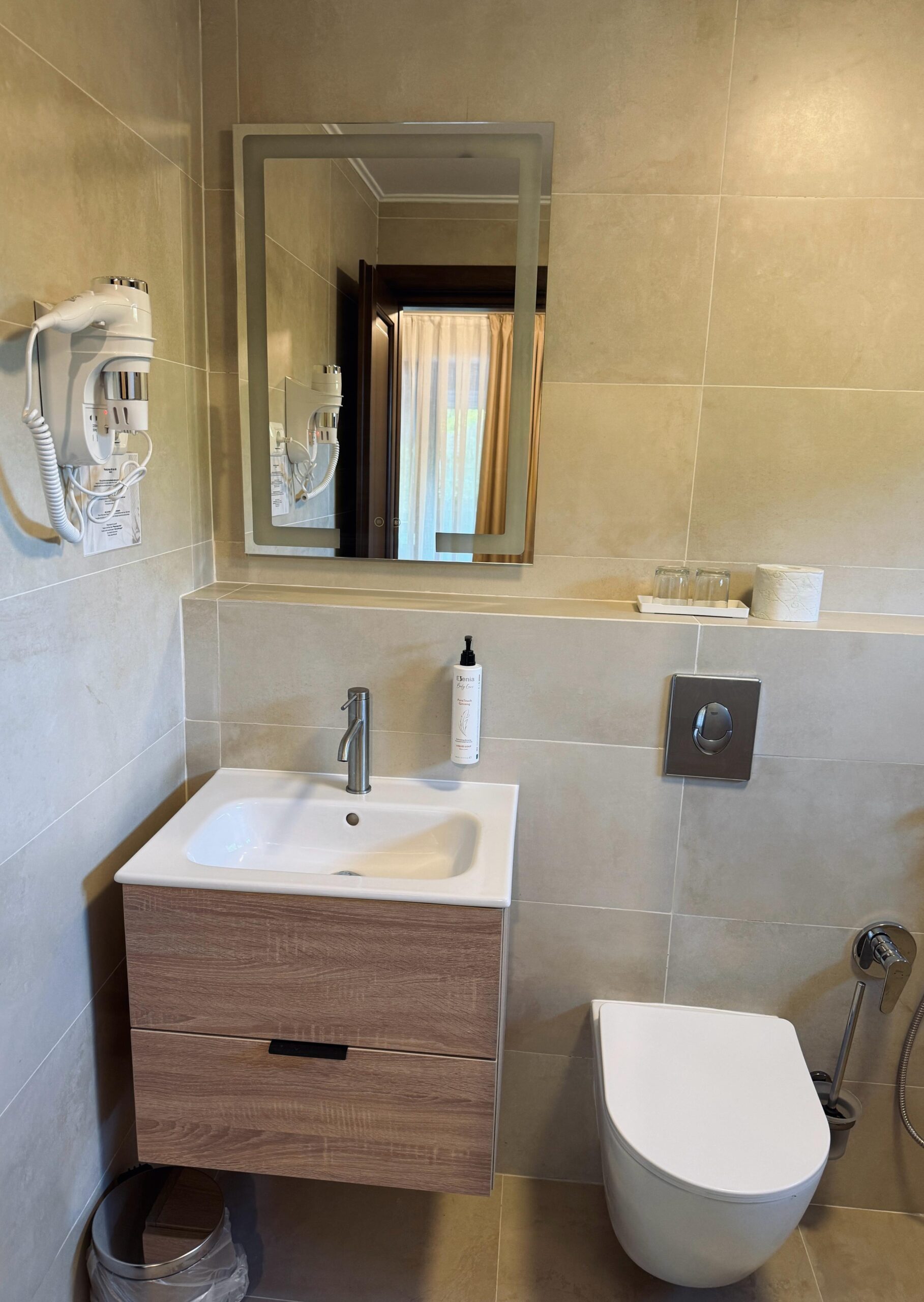 Baia, de 5 mp, este modernă și spațioasă, complet echipată pentru confortul zilnic.